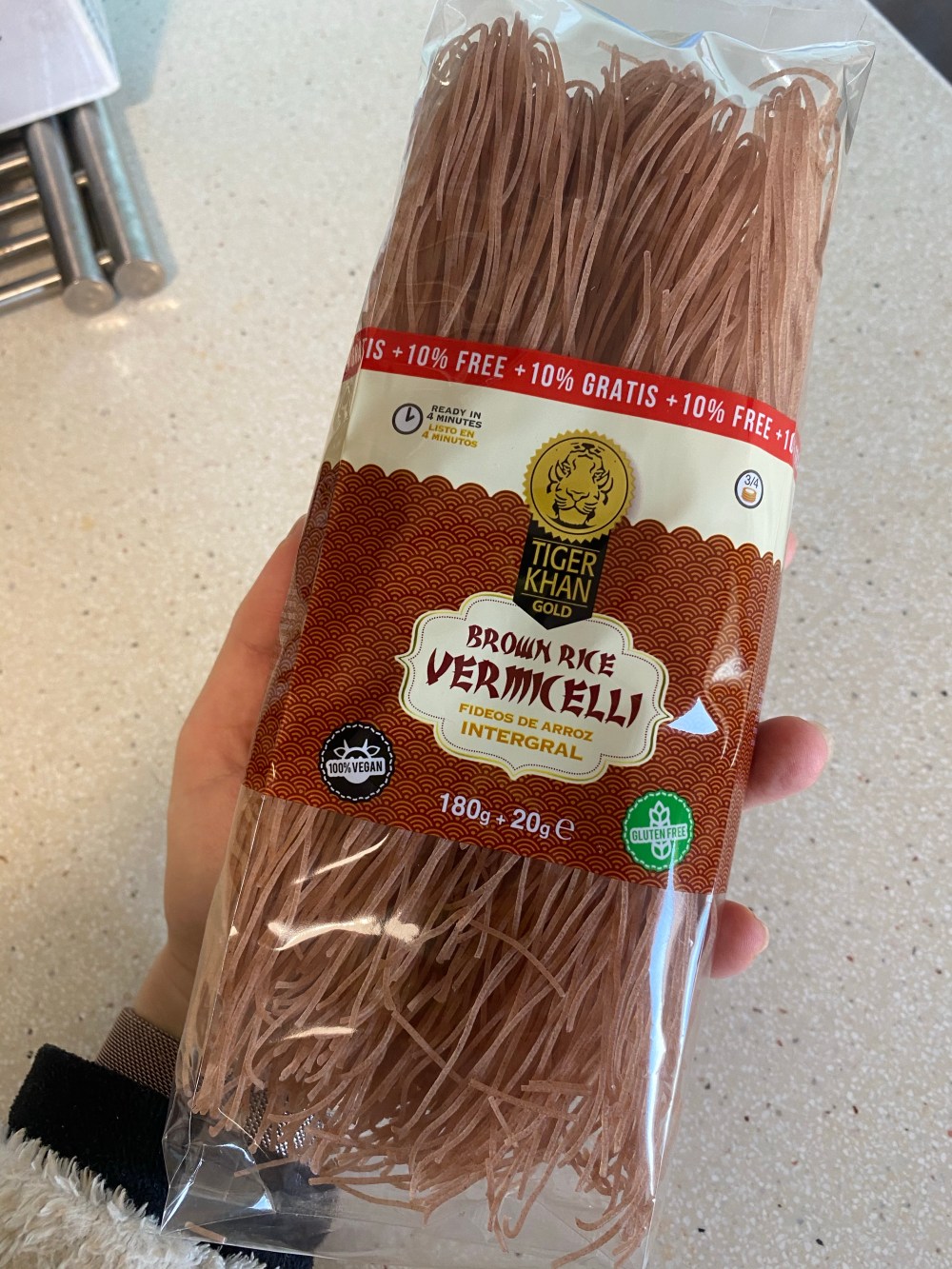 • 225 gramos de fideos estilo chinos. Yo uso los de arroz integral de Vermicelli (los encontraréis en grandes superficies)
