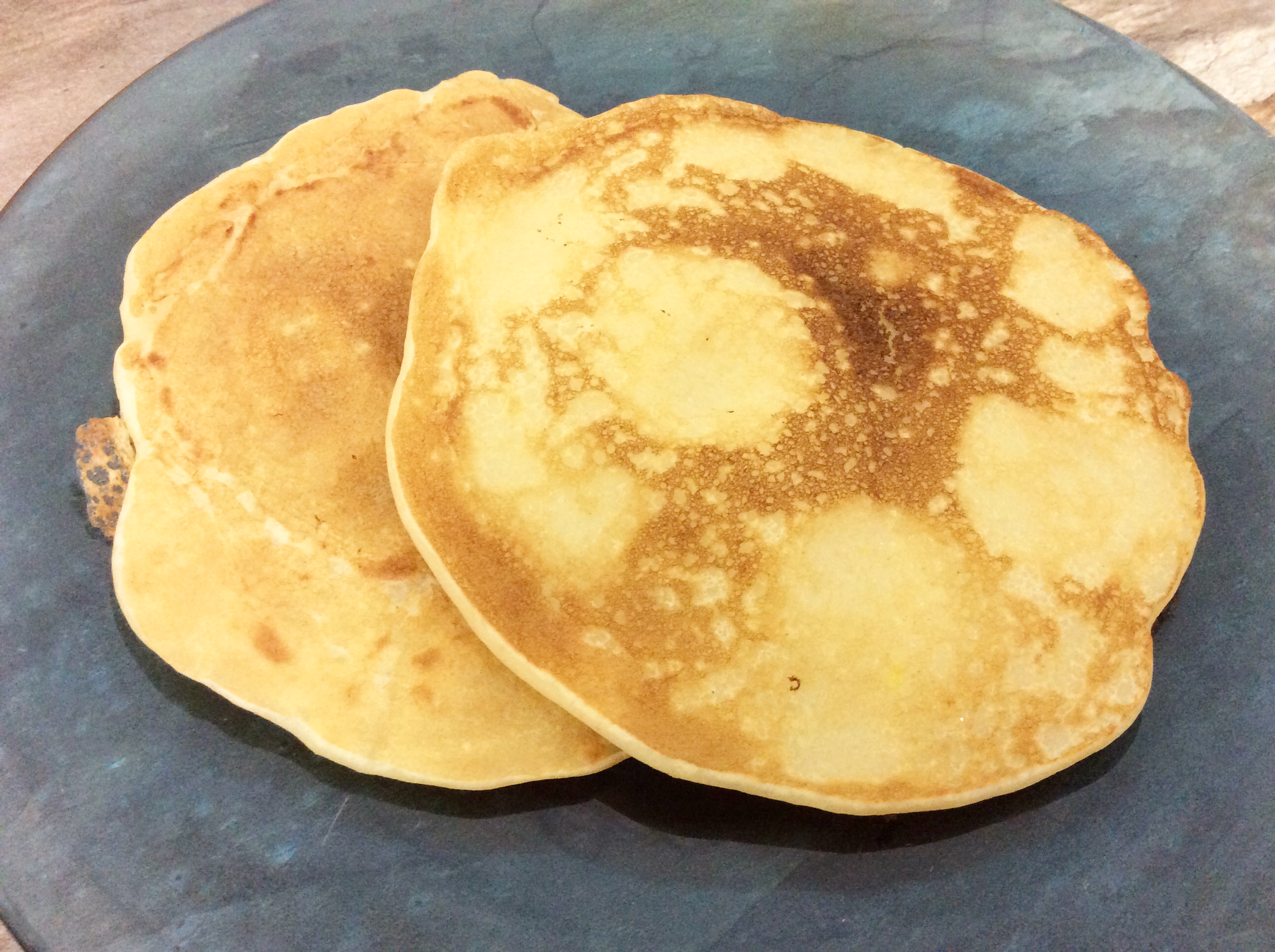 Ponemos a calentar a fuego medio-alto una sartén o plancha untada con un poquito de mantequilla, y cuando esté caliente, vamos echando cucharadas y haciendo las tortitas. Será el momento de darles la vuelta cuando empiecen a salir burbujitas.