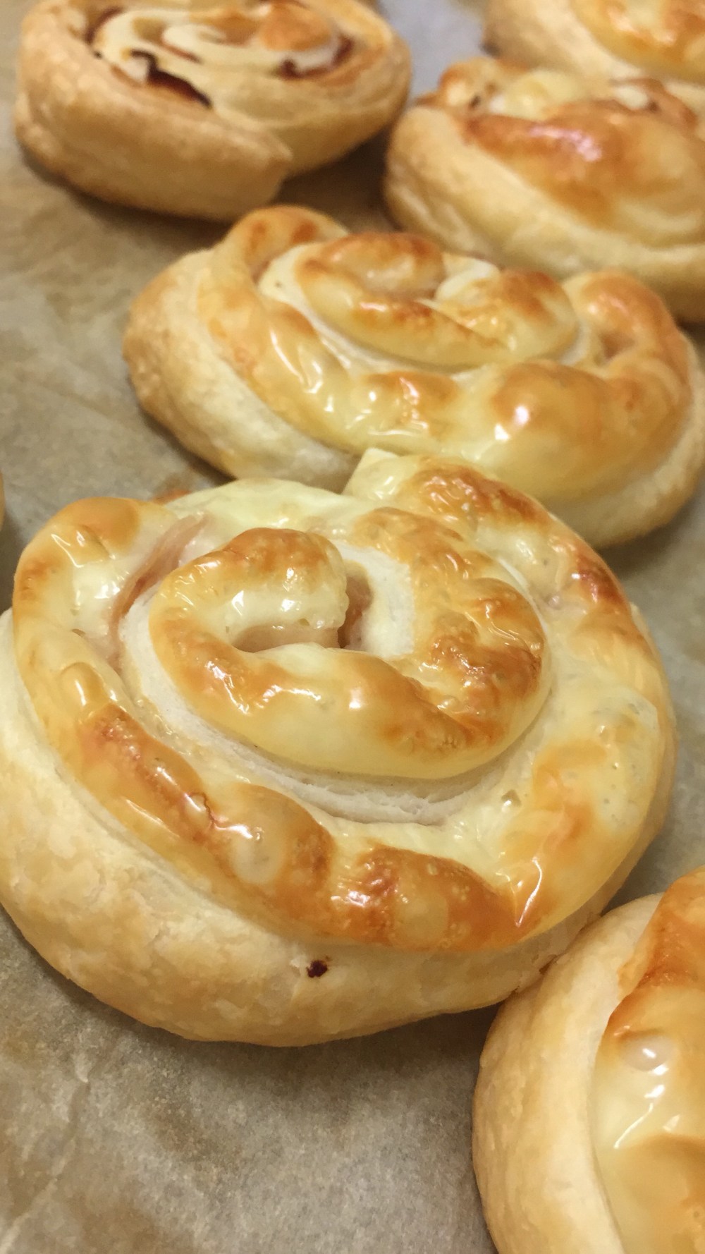 Horneamos durante aproximadamente 20-25 minutos y ¡A comer! ¿A qué quedan monas? En este caso, el queso era muy gordo y al derretirse no se aprecia tanto la forma de espiral, pero si lo hacéis con lonchas normales finitas, queda aun mejor.