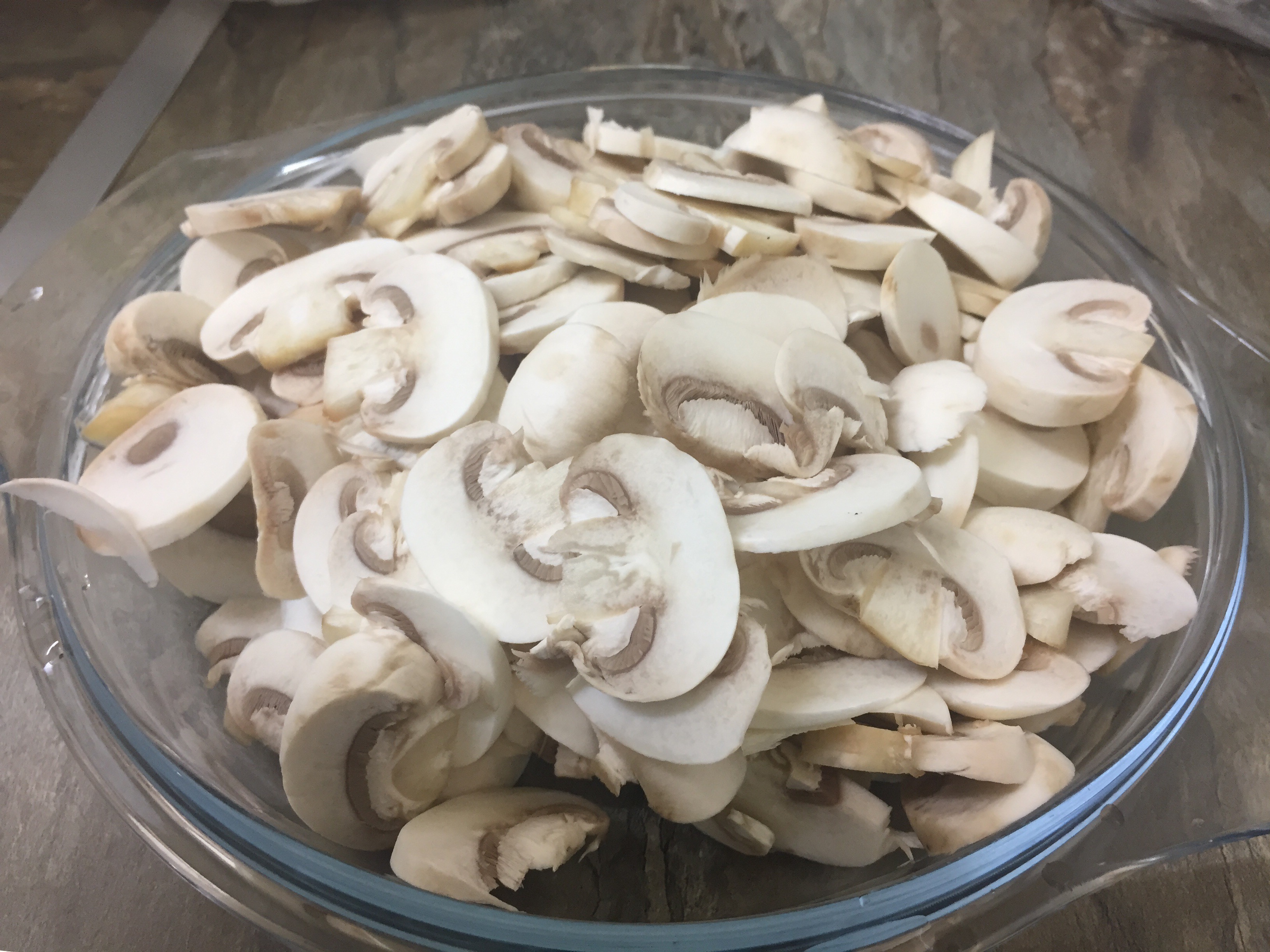 Agregamos a lo anterior la mantequilla. Una vez fundida, añadimos los champiñones laminados y salteamos, revolviendo de vez en cuando para que no se peguen, hasta que estén completamente blandos y todo el líquido se evapore (unos 20 minutos).
