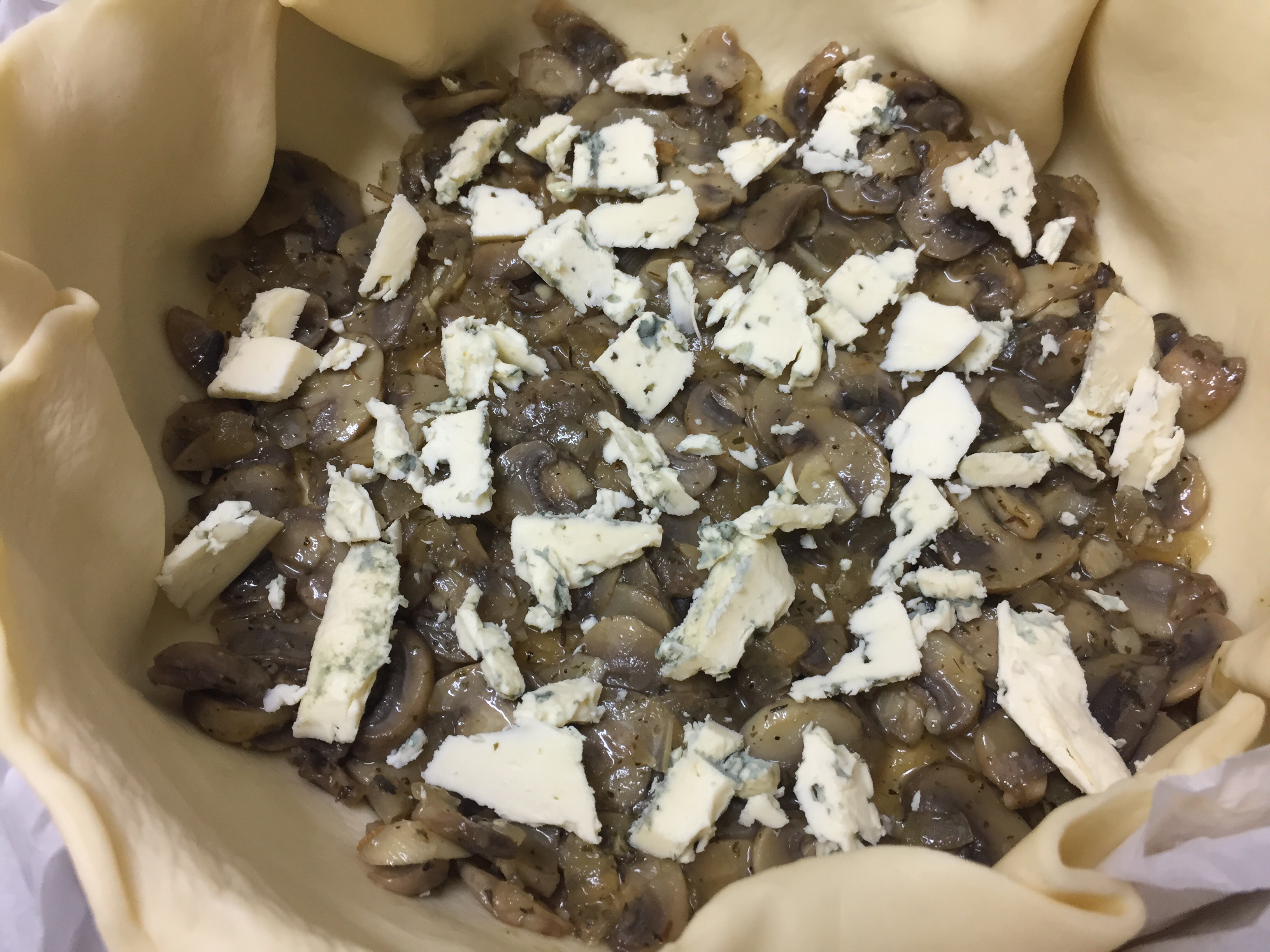El toque fuerte del queso combina a la perfección con el dulzor de la cebolla y la jugosidad de los champiñones. La masa, que resulta muy blandita por el jugo, tiene la textura perfecta para esta mezcla. De todas formas, también podéis utilizar una base de hojaldre fresco y pincelarlo con un huevo batido para que quede doradito. Quedará muy rico también.