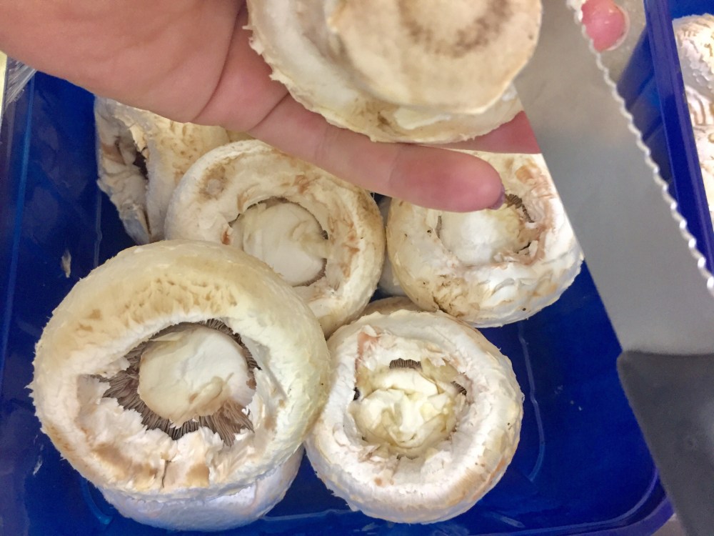 Lavamos los champiñones y le quitamos el rabito y un trocito del centro para dejar un hueco y poder rellenarlos. Los rabitos no hace falta que los tiréis, podéis guardarlos y utilizarlos para preparar un revuelto o un salteado.
