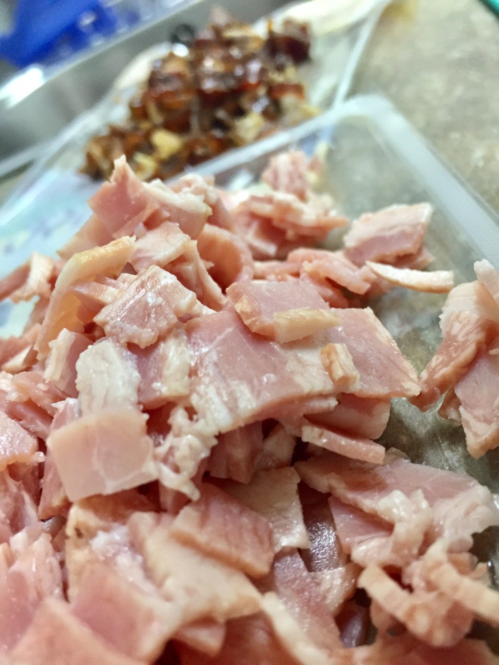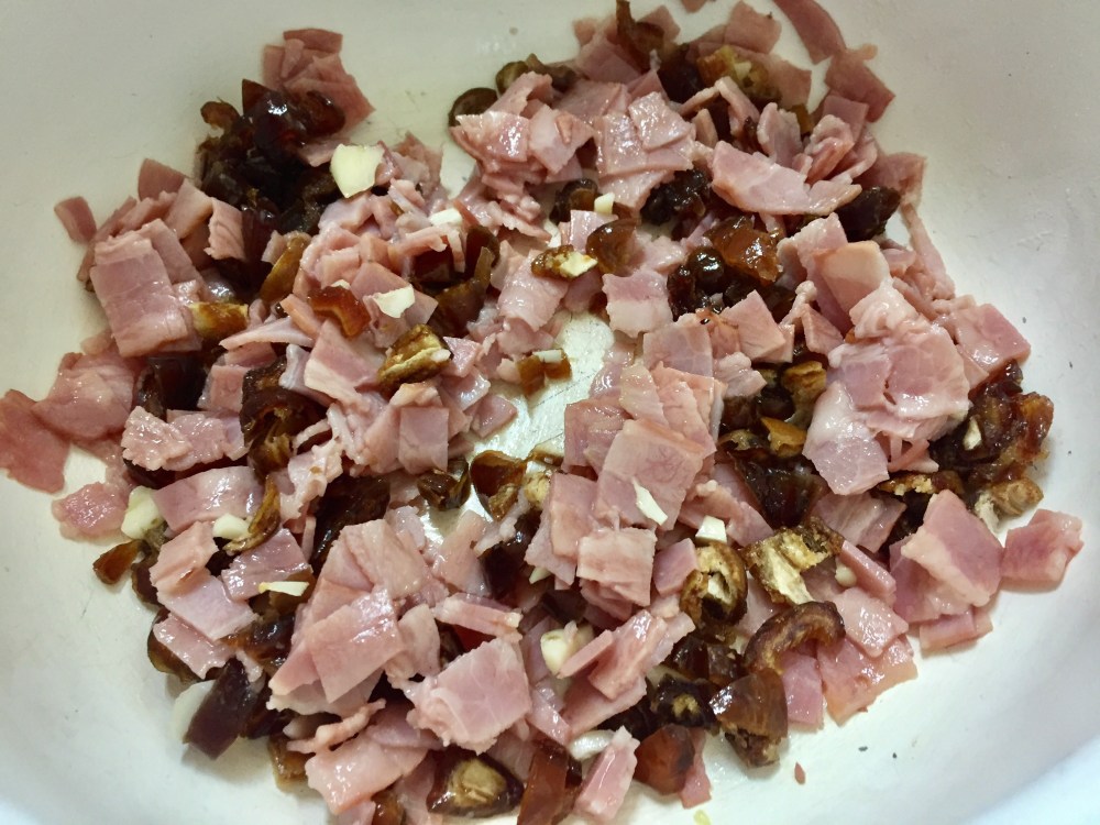Picamos los dátiles y el bacon en trozos pequeñitos.