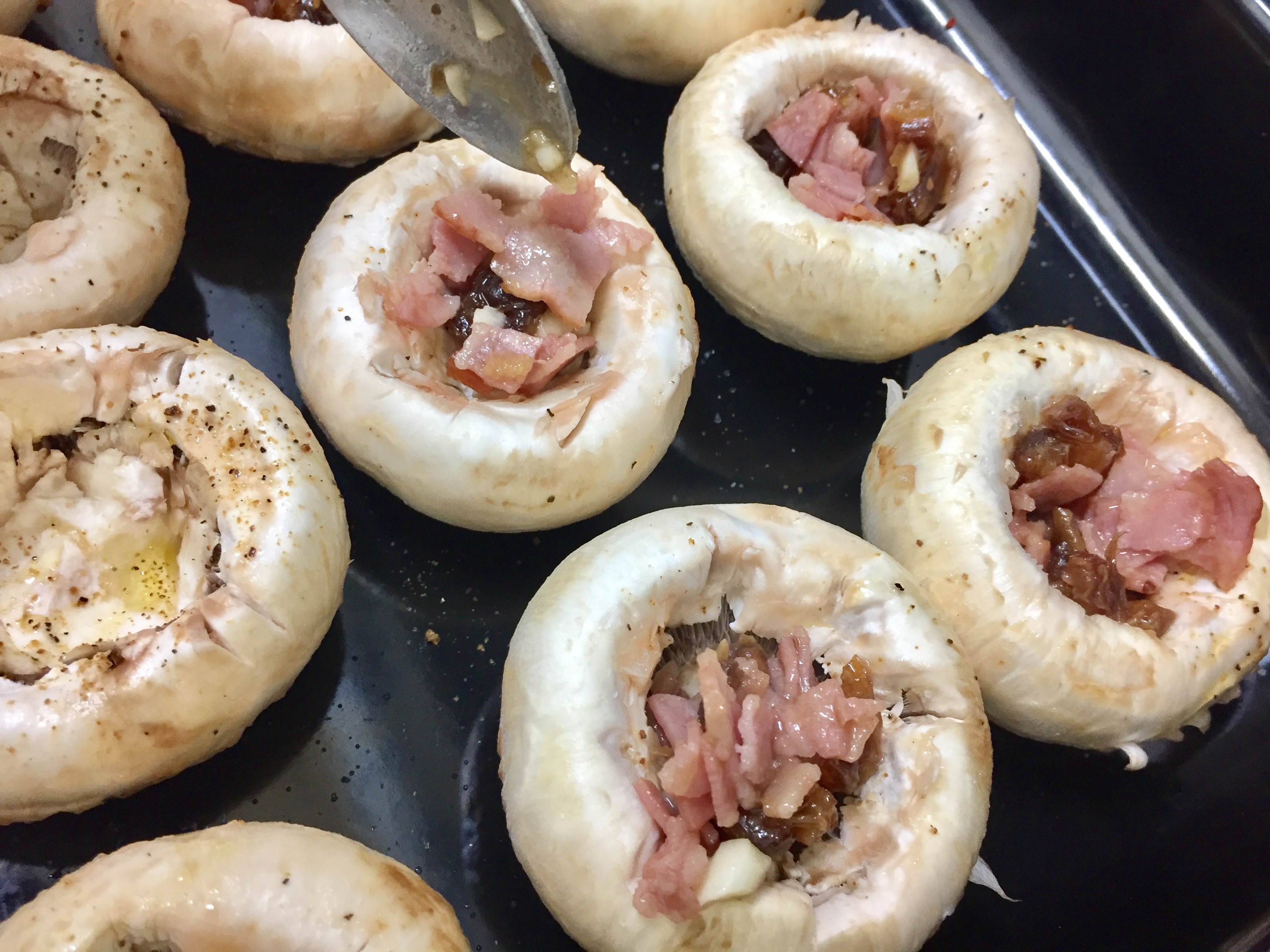 Rellenamos los champiñones con la mezcla de bacon, queso y dátiles.