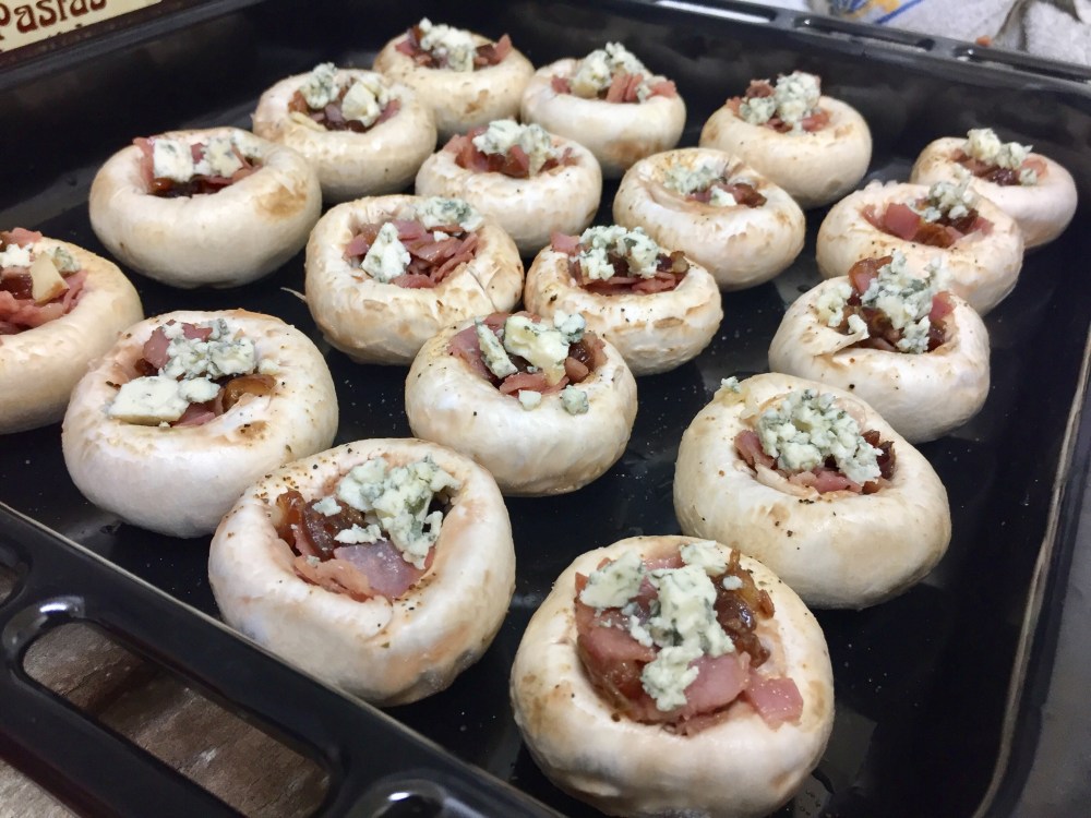 Estos champiñones rellenos que os enseño hoy resultan una combinación muy sabrosa, ya que cada alimento le aporta un toque especial al conjunto de la receta. El bacon el salado, el dátil el dulce y el queso el punto fuerte perfecto para la suavidad del champiñón.