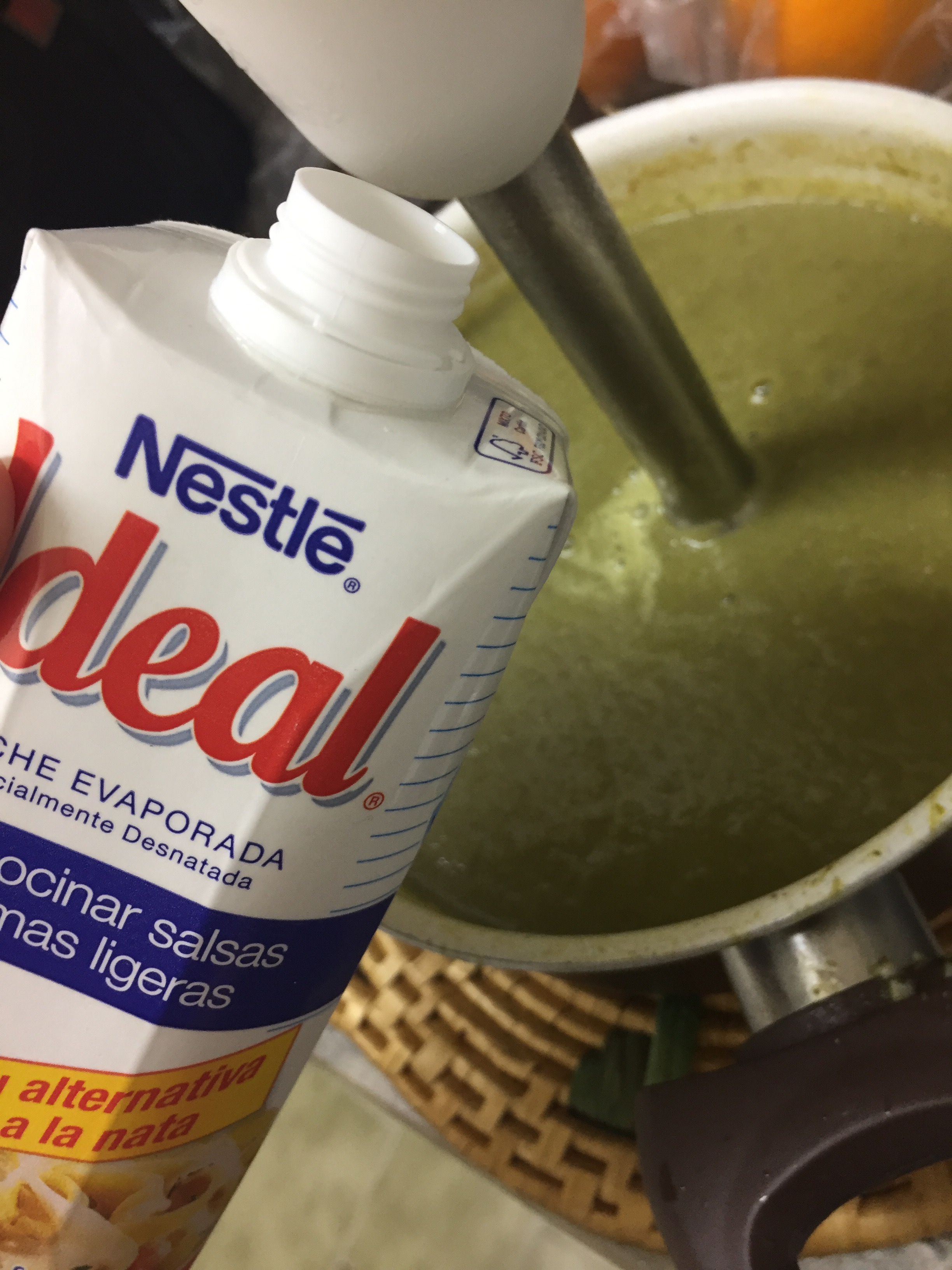 Pasado este tiempo y cuando veamos que las verduritas están bien cocidas, añadimos un poquito de pimienta negra y la leche evaporada.