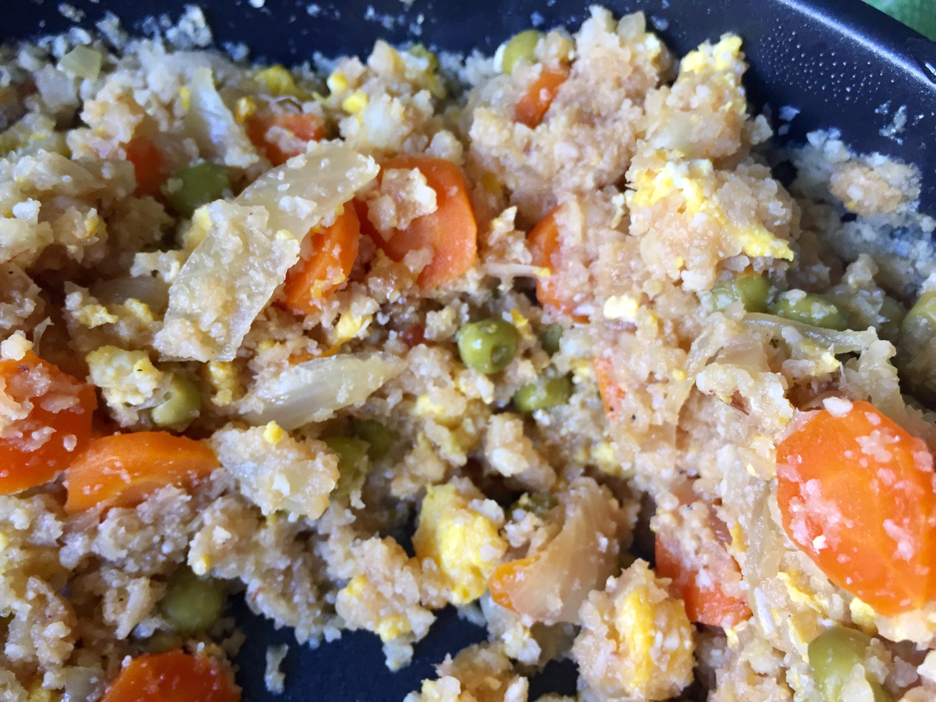 ¿El resultado? Un plato muy sencillo, delicioso y saludable. Perfecto para que los niños o no tan niños coman verduras. La coliflor, al estar rallada y cocinada con la soja y el huevo, resulta muy suave y rica. ¡Os juro que no sabe a coliflor! No tiene nada que ver con el sabor fuerte al que acostumbramos cuando la preparamos cocida sin más. La verdad es que en casa nos ha encantado a todos, incluso a los que odian la coliflor jeje.