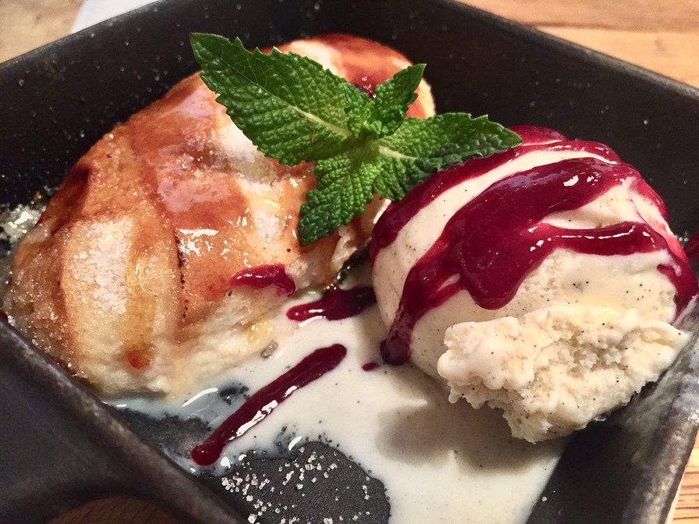 Torrija de brioche caramelizada con helado (de carta). Una verdadera delicia. Una textura perfecta con el caramelizado muy conseguido y una combinación de helado riquísima. Un 10.