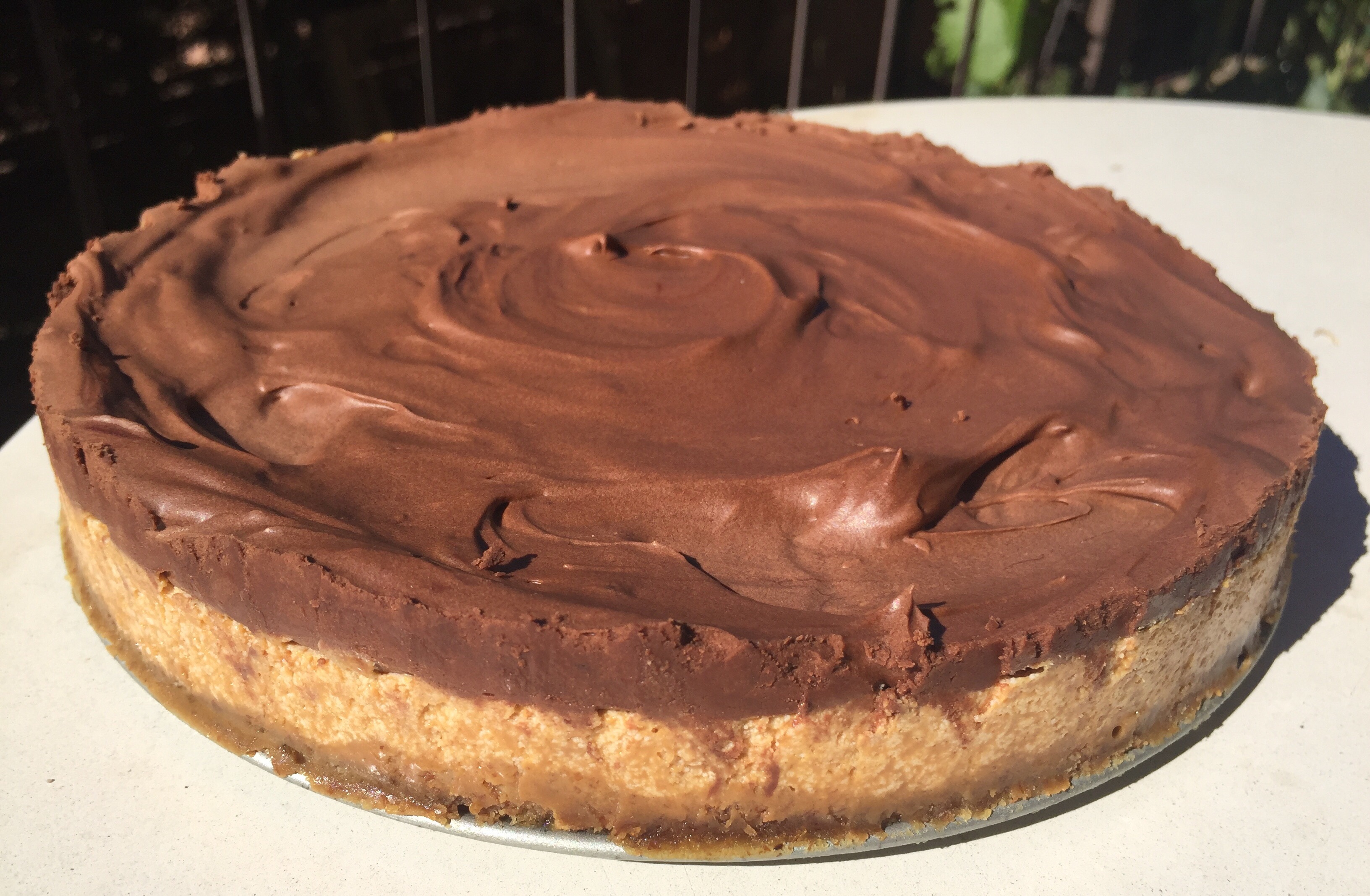 Montamos los 125 ml de nata restante y mezclamos con el chocolate. Vertemos encima de la tarta y refrigeramos otro par de horas. Podéis hacerla de un día para otro perfectamente, de hecho, es lo recomendable para que coja sabor y consistencia.