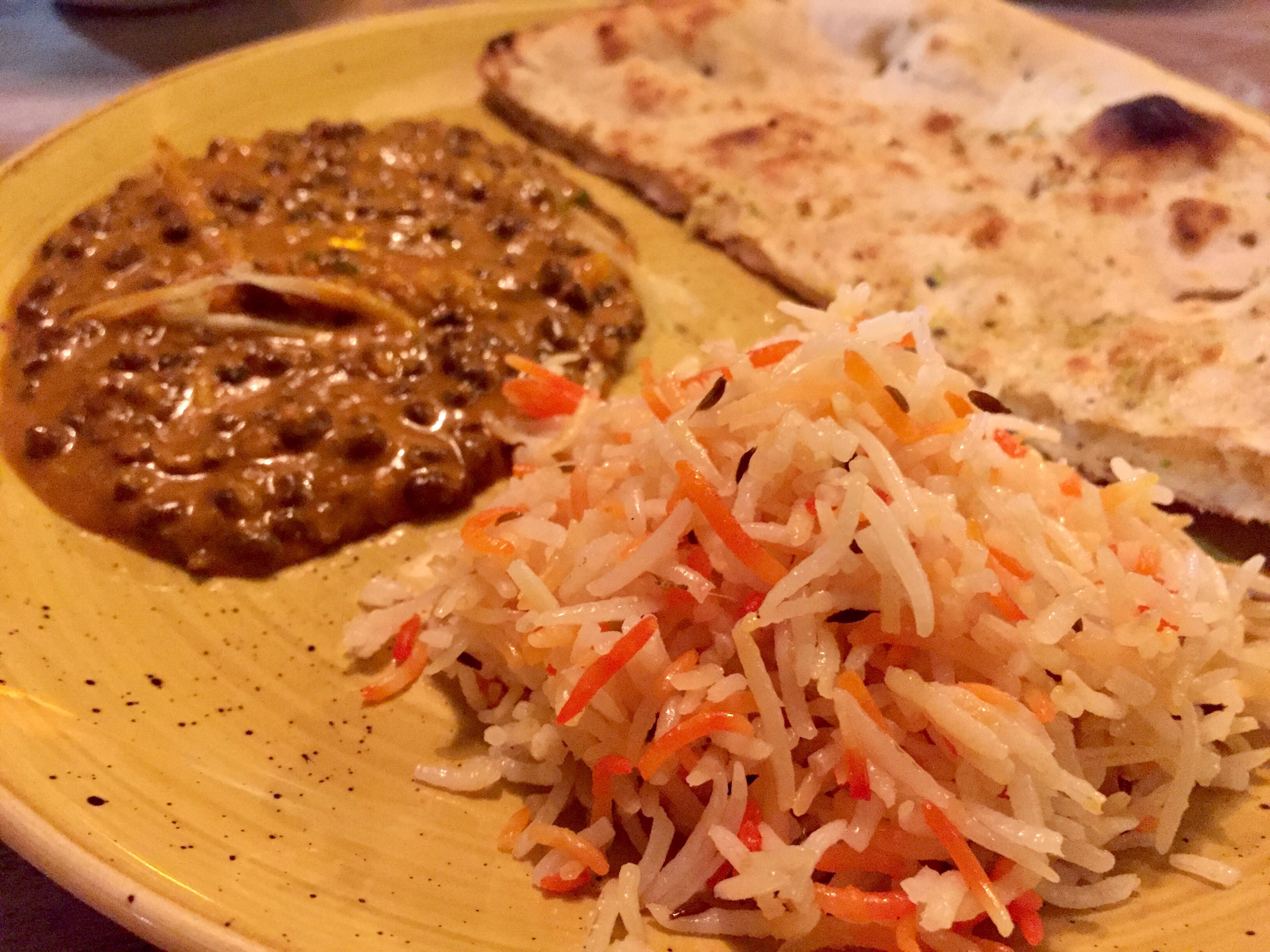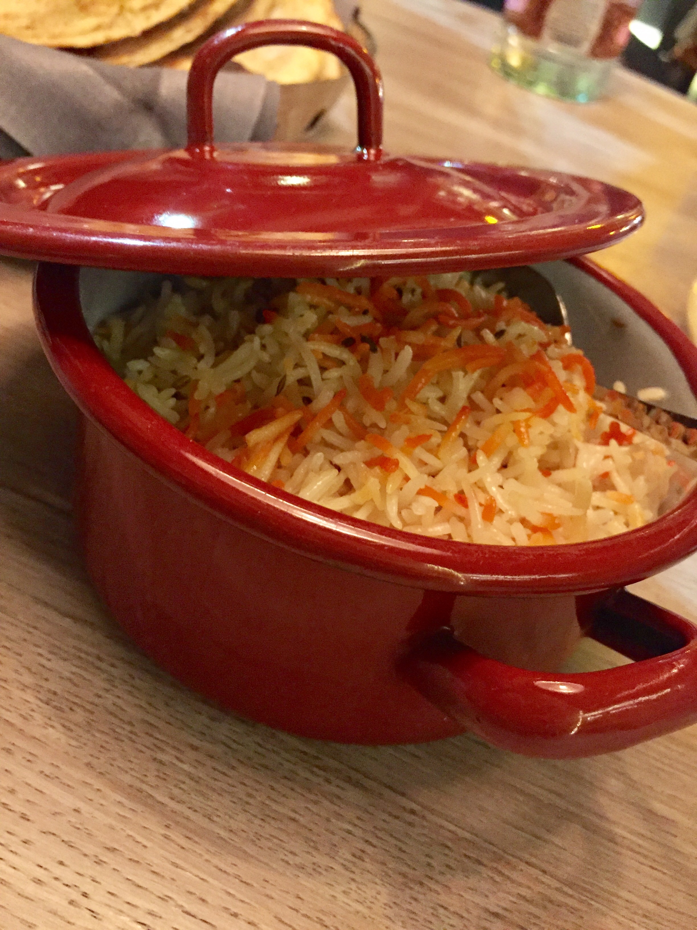 Para acompañar a cada uno de los principales, pedimos arroz basmati y pan indio.