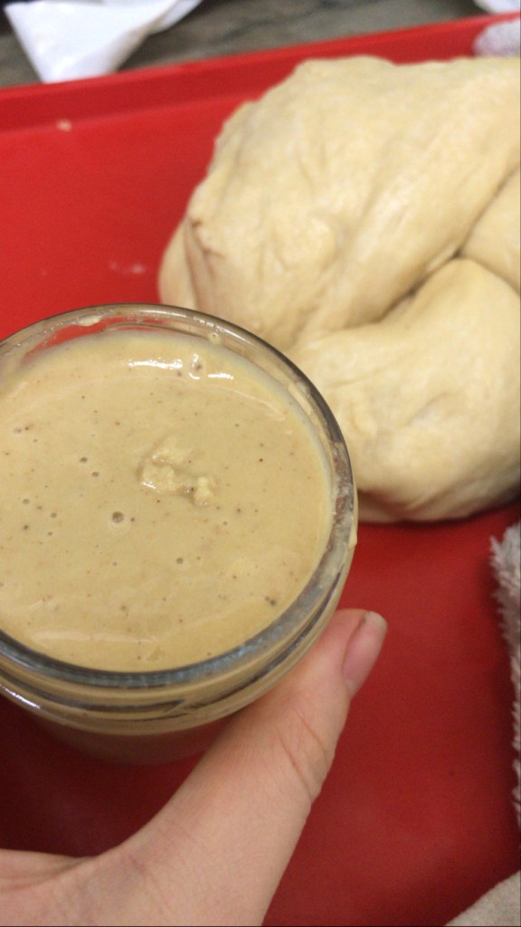 Pasado este tiempo, dividimos en tres partes, rellenamos con la crema (que os enseño debajo) y hacemos una trenza.